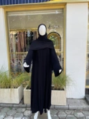 Dengan potongan yang flowy dan modest, abaya ini memiliki finishing jahitan piping halus di bagian tepi dan lengan, menambah kesan istimewa tanpa terkesan berlebihan. Materialnya yang nyaman dan ringan membuatnya cocok untuk berbagai momen—mulai dari pertemuan formal, acara keluarga, hingga kegiatan ibadah.